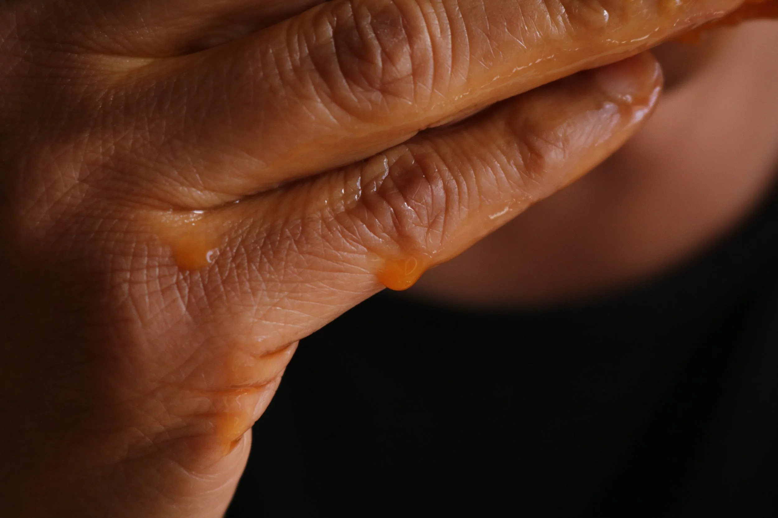 The box of mangoes is opened, and the hypnotising pattern of the packaging is revealed, often paired with newspaper lining the boxes to reduce impact. The netting of most of them is removed and will be put back later. First, they will be sorted, from most to least ripe. Each fruit is handled with care and a reverence that understands the quiet wealth they carry in their rarity. Their sweet aroma fills the kitchen, the riper the mango the stronger the scent. Deep inhales are heard as everyone observes the colour of each mango, and a gentle finger is pressed into some to assess how much give the flesh of the fruit has.
